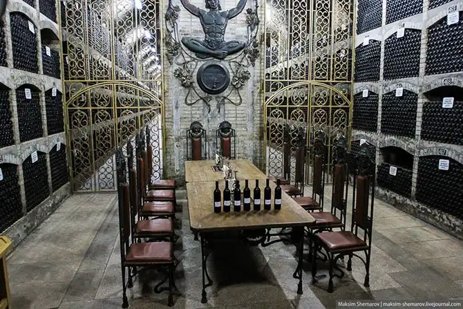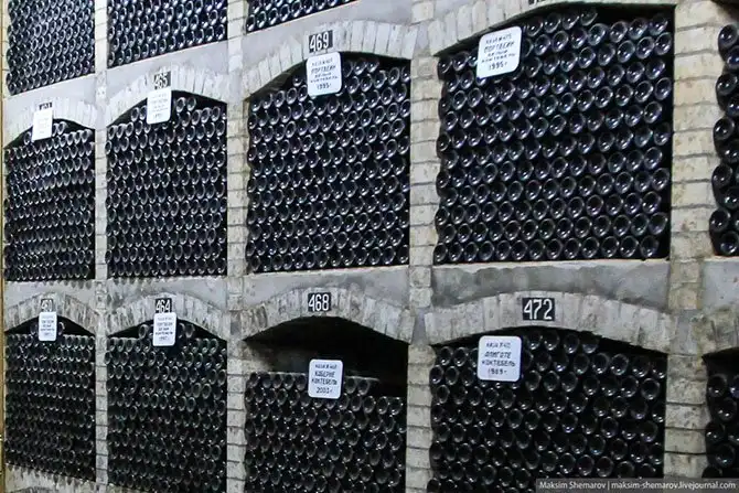 В подвалах есть и энотека с коллекционными винами, выпущенными на заводе.