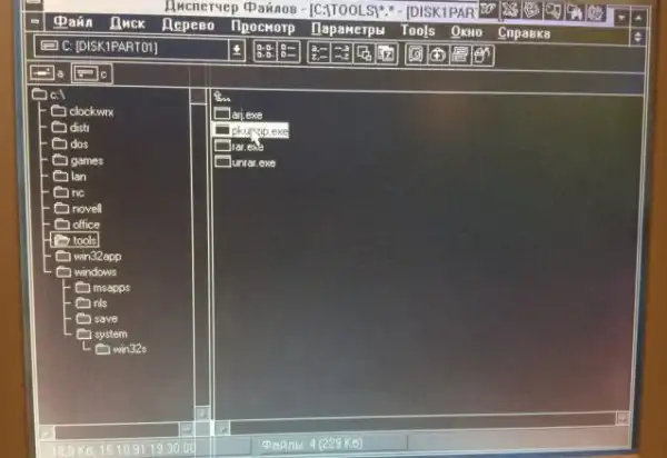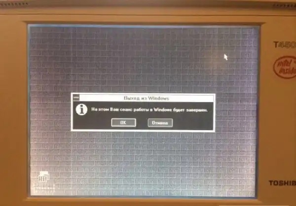 После включения открывается DOS. В голове остались только команды Format C: и DIR. Но перебрав всё возможное сработала команда WIN.