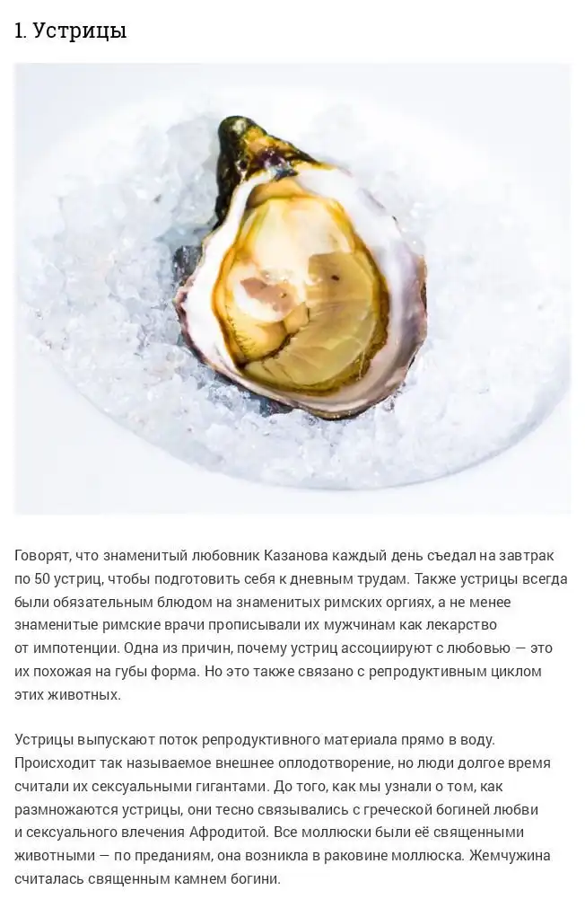 Существует целый ряд продуктов, которые по-научному называются афродизиаками. Такие продукты увеличивают потенцию и вызывают страсть, поэтому принято их употреблять, например, во время романтического ужина со своей "второй половинкой" ;)