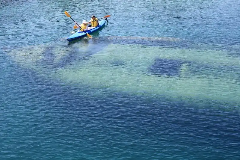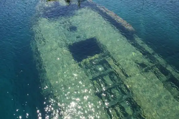 На фото оказывается — затонувшее судно Sweepstakes. Оно считается одним из наиболее хорошо сохранившихся затонувших в Великих Озерах кораблей 19-го века. Его корпус регулярно осматривают и укрепляют, чтобы деревянная достопримечательность не развалилась.