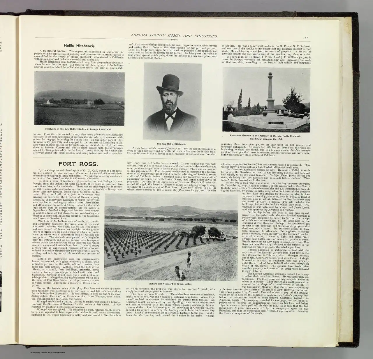 Публикация Ф. Хатч (F. Hatch) посвящена присутствию русских в Калифорнии, в ней есть и страницы, рассказывающие о Форте Росс [Hatch, 1922]. Автор кроме исторических описаний дает зарисовки современного ему состояния окрестностей и зданий крепости.