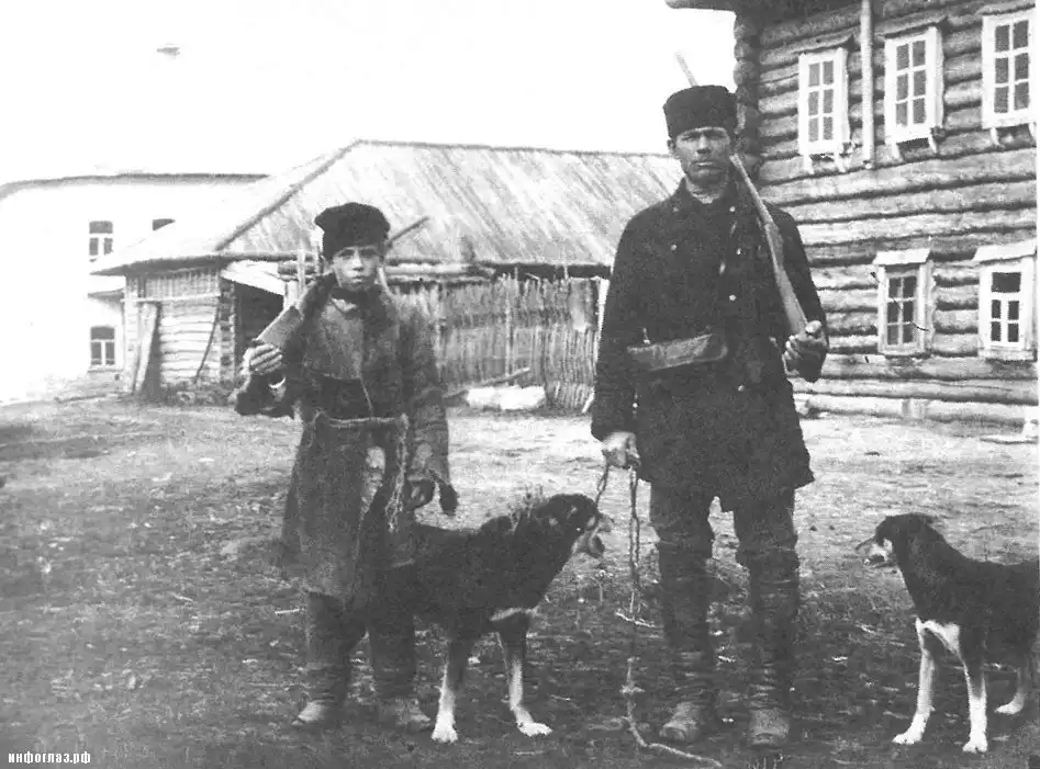 Отец с сыном перед охотой. Вятская губ., Глазовский у. 1907
