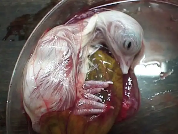 На 20-е сутки желток втянут полностью, глаза открыты, наклев.