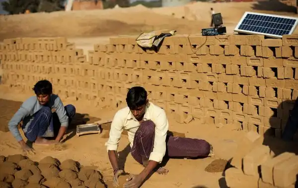 Процесс на первый взгляд кажется очень занимательным. Особенно под индийскую музыку. О цивилизации и XXI веке напоминает приемник подключенный к солнечным батареям. Уж чего-чего, а солнца и ветра в пустыне Тар хоть отбавляй. После процесса формовки, кирпичам нужно высохнуть перед заключительным процессом обжига.