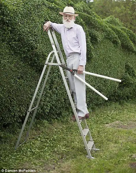 Пенсионер Джон Брукер, с помощью лестницы часами обрезал огромные кусты, достигающие в высоту 6 метров.