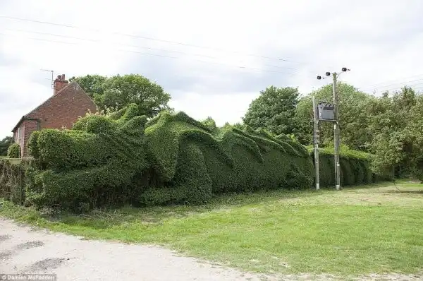 75-летний пенсионер Джон Брукер, проживающий на ферме Фриззлетон возле Кингс-Линн, потратил десять лет жизни на создание в Норфолке одной из самых больших "живых" скульптур в мире - хеджирование гигантского 30 метрового дракона.