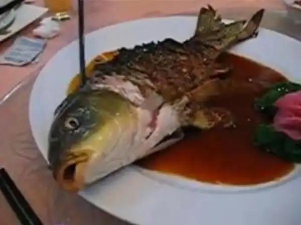 Рыба Инь-Янь – блюдо, также известное, как мертвая или живая рыба. Для его приготовления берется целый живой карп и жарится, пока он еще живой. Это блюдо является наиболее спорным, потому что многие осуждают эту практику излишней жестокости.