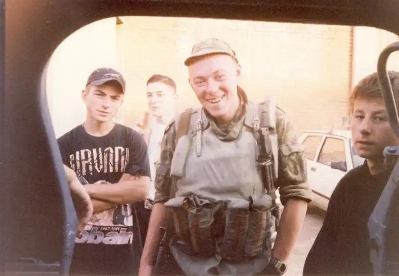 Сербские подростки и немного нетрезвый русский. Фото сделано из бокового люка БТРа, так называемой «рампы».