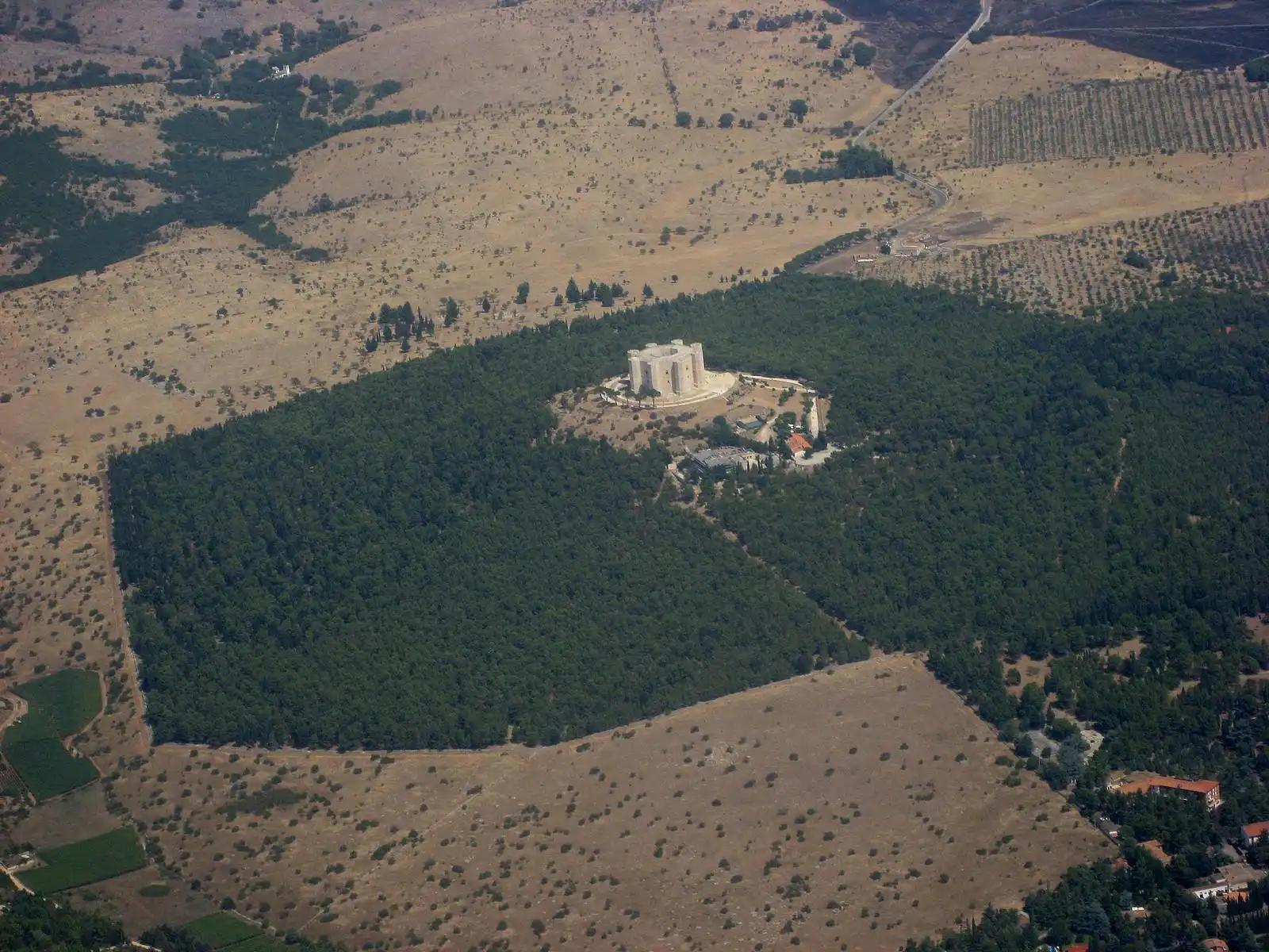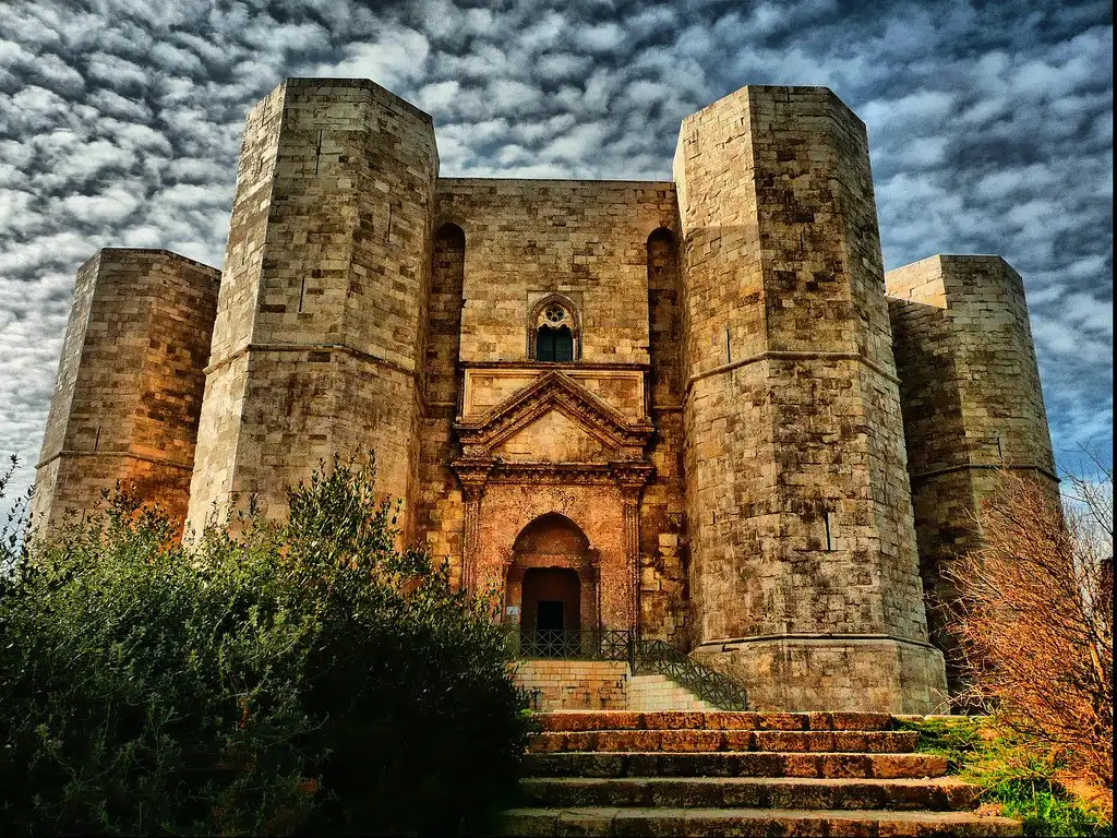 В качестве места для будущего строительства очередного замка Фридрих II выбирает Апулию, регион, входящий в тот период в состав Сицилийского Королевства (ныне регион провинции Бари на юге Италии), где он, собственно, вырос и прожил все свое детство и юность. Согласно бытующему преданию, Castel del Monte (от итал. «замок на горе» или «замок горы») был построен на месте руин покинутого монастыря Святой Марии, а точнее, на небольшом возвышении в виде холма, расположенного посреди безлюдной равнинной местности (в 16 км от города Андрия), позже получившей название Terra di Bari. Отсюда и происхождение первоначального названия замка Сastrum Santa Maria de Monte, которое сохранялось за ним на протяжении долгого времени.