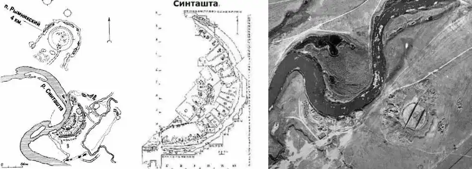 Храмовый комплекс Синташта, куда входят один большой и много маленьких курганов детально изучен в советский период. На этой основе археологами написано несколько книг, множество статей. Средний возраст комплекса 4000 лет. Общепринятое научное мнение, что это был именно храмовый религиозный комплекс Арийских племен, своего рода культурная столица. Учитывая, что возраст и городища и курганов превосходит Аркаимские находки, можно сделать вывод, что храмовый комплекс здесь появился, возможно, за 100-200 лет до строительства Аркаима. Размеры Синташтинского городища вполовину превосходят Аркаим. Предположительно, что город и храмовый комплекс Синташта жили все время периода «Страны городов», значит не менее 300 лет.