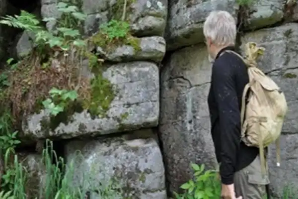 Вот наш уважаемый томский историк Сидоров Георгий Алексеевич стоит у "кирпичика" в основании фундамента стены. Впечатляет? А вы говорите Баальбек, Баальбек.... Да Баальбек просто карлик в сравнении с тем, что перед вами на фото. Но наука слона в упор не замечает!