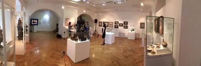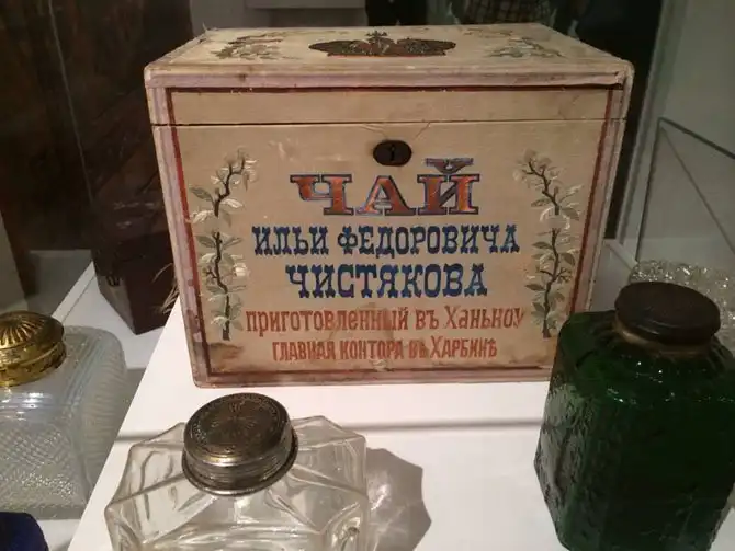 Выставка об истории чайного бизнеса в России наполнена немалым количеством экземпляров круглых и бодрых начищенных кувшинов (это часть, где кипятится вода) самых разнообразных самоваров. Рядом – богато убранные чайные столы, делят пространство рекламные щиты когда-то элитарного напитка, Кустодиевская «Купчиха за чаем» и другие репродукции посвященных чаепитию картин чередуются на экране.