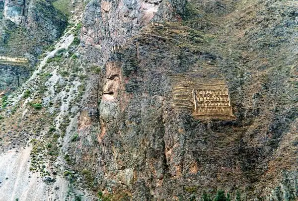 Каменоломня, расположенная неподалёку от городка Олантайтамбо, откуда лемурийцы добывали строительные блоки для своих строений. Обратите внимание на характерные точечные выступы и гладкую поверхность ниш