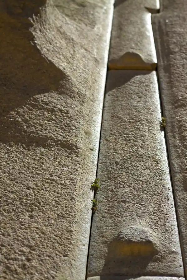 Некоторые монолиты, имеют множественные фигурные вырезы, соответствующие вырезам соседних блоков. (Представьте себе инков, с примитивными орудиями, делающих эти пазы с точностью до миллиметров.) Этим достигалась феноменальная прочность сцепления блоков. Но, каким образом инки укладывали многотонные камни так, чтобы пазы двух соседних блоков вошли друг в друга? Зачем и кому была нужна такая запредельная прочность сцепления?