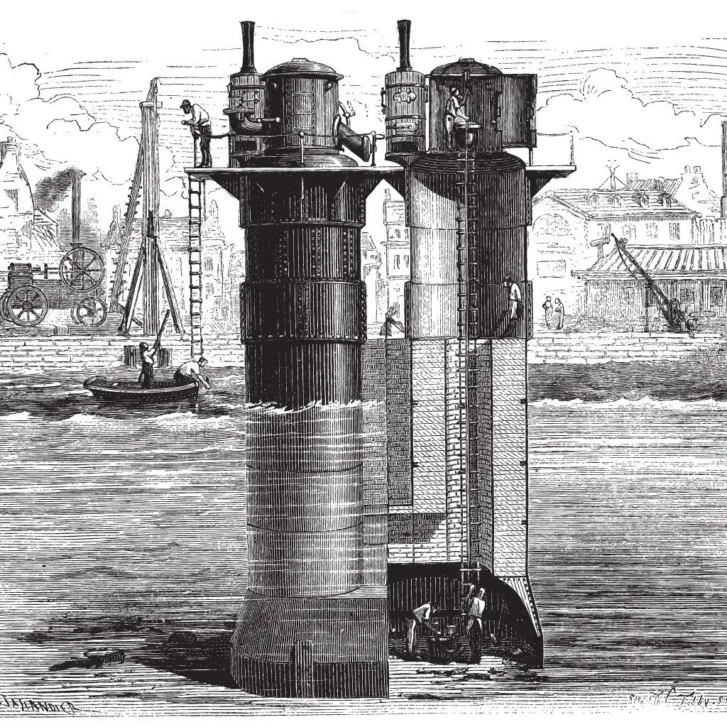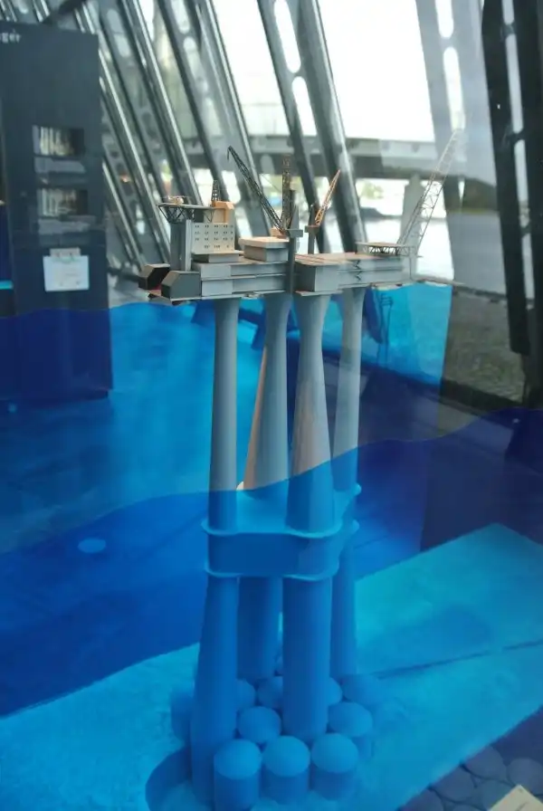 Основание платформы — огромные бетонные цилиндры — имеют высоту 303 метра. В каждой из них есть лифт, подъем которого наверх занимает 9 минут. Стенки цилиндрических ног имеют толщину более 1 метра.
