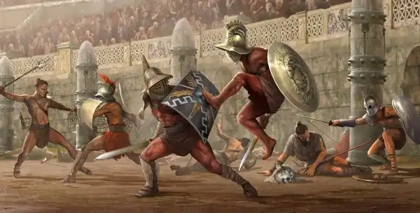 Гладиаторские бои были переняты римлянами у греков, этруссков и египтян и приняли религиозный характер жертвоприношения богу войны Марсу. В начале гладиаторами являлись военнопленные и приговорённые к смертной казни. Законы древнего Рима позволяли им участие в гладиаторских боях. В случае победы (на полученные деньги) можно было выкупить свою жизнь. Были случаи, когда граждане, отказавшись от имеющейся у них свободы, вступали в гладиаторы в погоне за славой и деньгами.