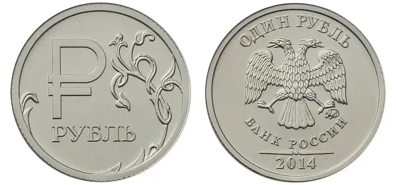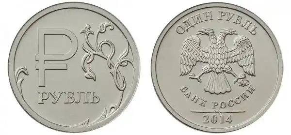 Лицевая сторона новых монет выглядит обычно — двуглавый орел между надписями "один рубль" и "Банк России" и дата "2014".