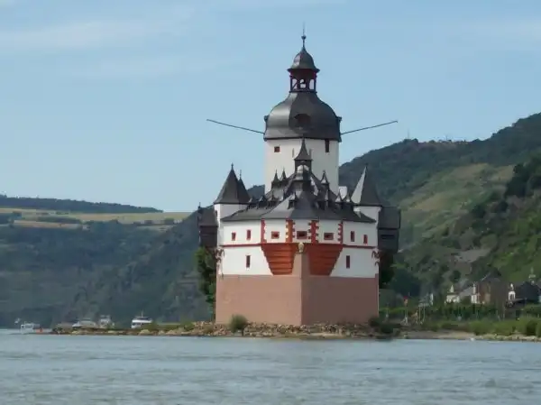 Замок расположенный прямо посреди Рейна на маленьком островке Falkenau, часто называют просто Пфальц. Сам остров находится напротив небольшого городка Кауб. Пфальцграфенштайн известен за свою необычную форму и живописное расположение.