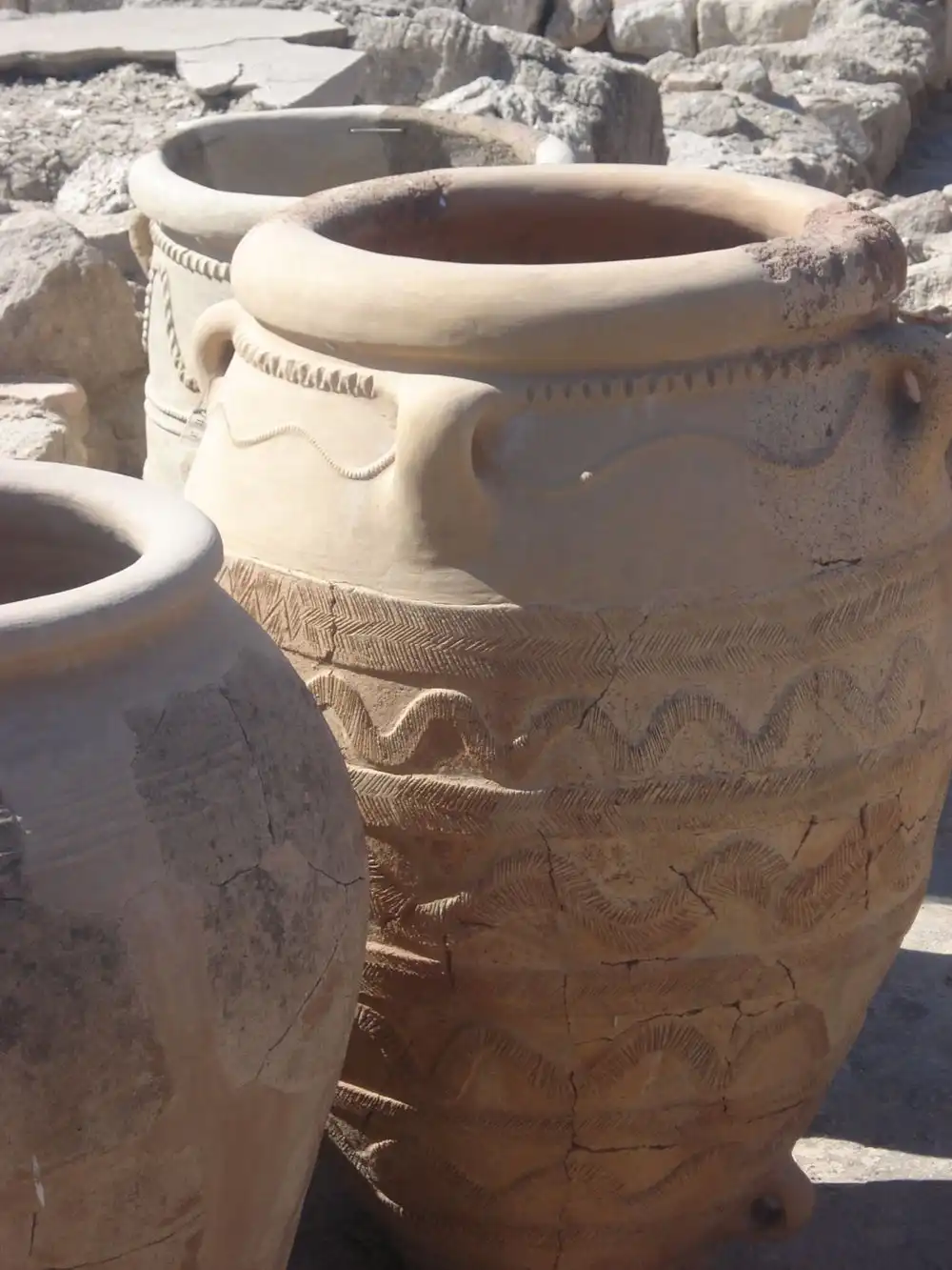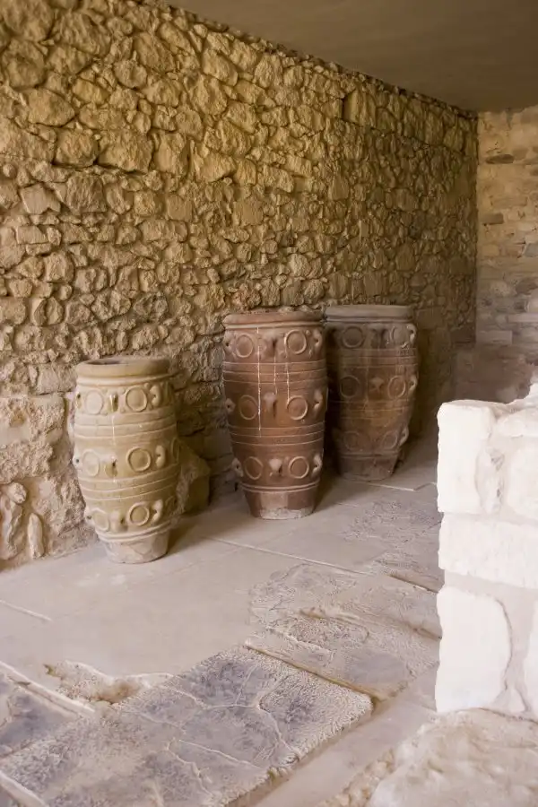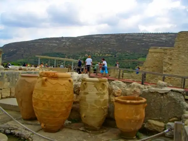 Эванс нашел также кладовые, заставленные гигантскими сосудами (пифосами) с вином, общая емкость которых составила, по подсчетам археолога, 80 тысяч литров. Таким оказался дворцовый запас одного только питья.