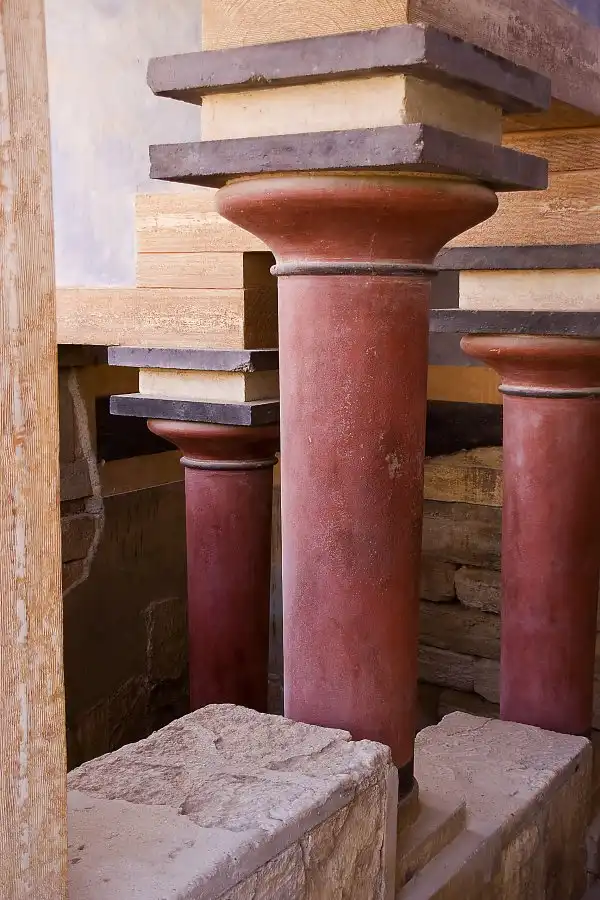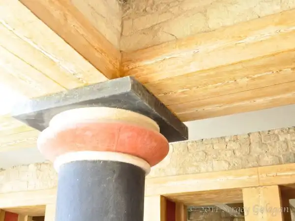 Строители проявили немалое архитектурное мастерство и фантазию в составлении самого плана дворца. Они искусно разместили отдельные его части, соединив большие залы и храмы в одно целое, не оставив без внимания возможность оптимального освещения здания. С этой целью в лабиринте устроены особые пролеты, внутренние дворики-колодцы, через которые свет падал или на лестницы, или непосредственно в залы, получавшие таким образом освещение е одной стороны. Применение колонн позволяло при этюд увеличивать размеры комнат, приближая их по площади к самым обширным залам современных дворцов.