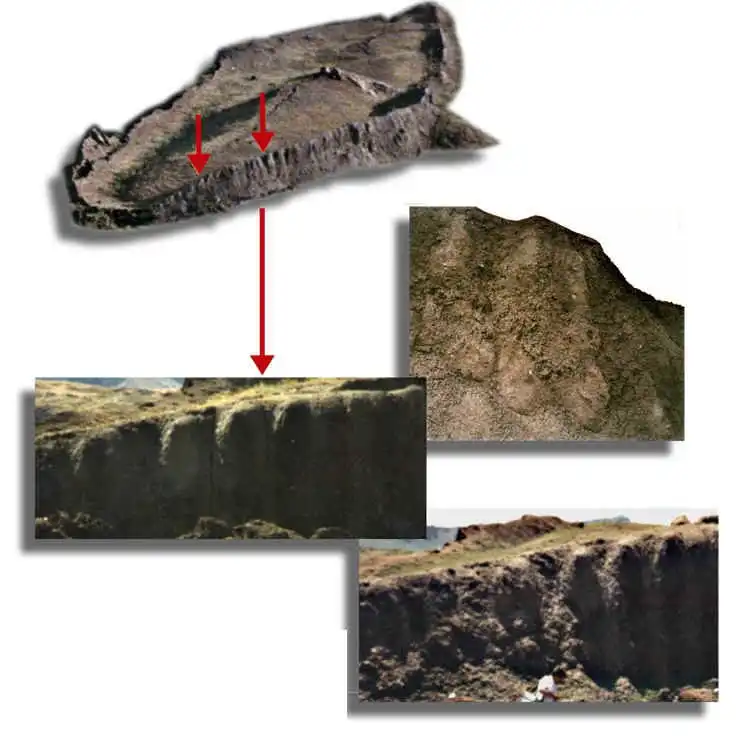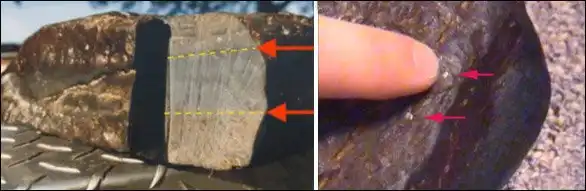 Направленные в лабораторию Galbraith Labs, что в штате Теннесси, они показали наличие в них навоза, кусочков рога и животной шерсти. При внимательном исследовании окаменелого дерева, оказалось, что некоторые образцы состоят из трехслойных, проклеенных каким-то органическим клеем, досок. Такая же технология как, скажем, при производстве фанеры. Снаружи доски были когда-то покрыты битумом.