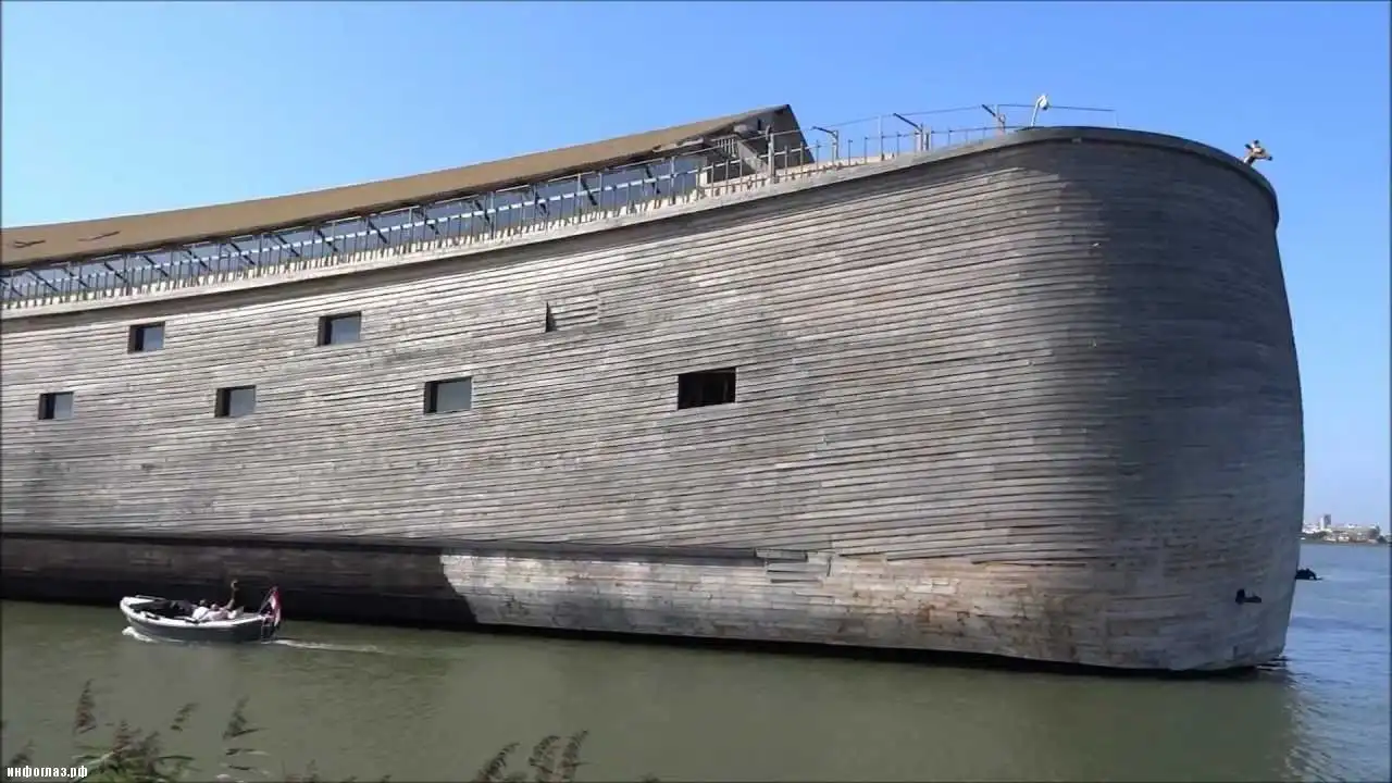 Несоответствие с Ноевым ковчегом только в том, что современный построен не из мифического дерева «гофер» (предположительно, кедра или кипариса), а из металлических каркасов старых барж. Облицован корпус полноразмерного корабля скандинавской сосной.