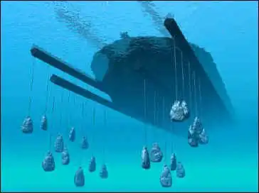 Предполагается, что все надстройки судна обрушились в корпус, превратившись в окаменелый со временем мусор