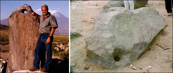 В нескольких километрах от местонахождения ковчега были обнаружены огромные камни, некоторые в вертикальном положении, другие лежали на земле. Камни имеют отверстия, высверленные в них. Исследователи предположили, что они служили якорями и через отверстия эти были привязаны к судну конопляной веревкой. Камни давно известны паломникам искавшим ковчег и покрыты выгравированными крестами.