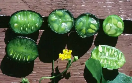 Мелотрия шершавая – многолетняя лиана родом из тропических лесов экваториальной Африки. Маленькие зелёные плоды с хорошо выраженным мраморным рисунком по вкусу напоминают огурцы, которые можно есть свежими или консервировать.