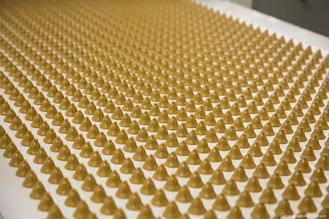 Производство куполообразных конфет. В цехе куполообразных конфет производятся конфеты, имеющие форму купола. В данном случае мы видим, как станок отливает конфеты «Родные просторы».