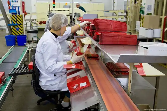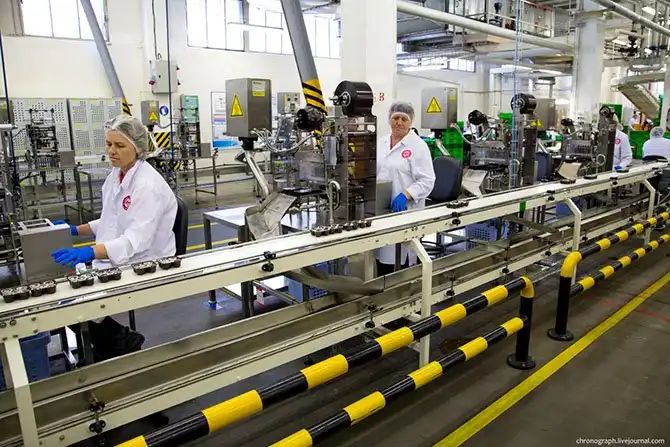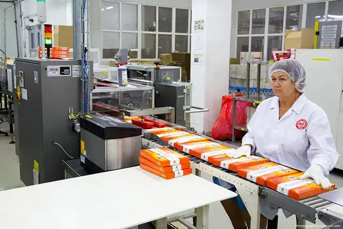 На фабрике поддерживается очень высокий уровень чистоты и порядка – все работники ходят в спецодежде и шапочках. На входе в производство обязательно мытьё рук.