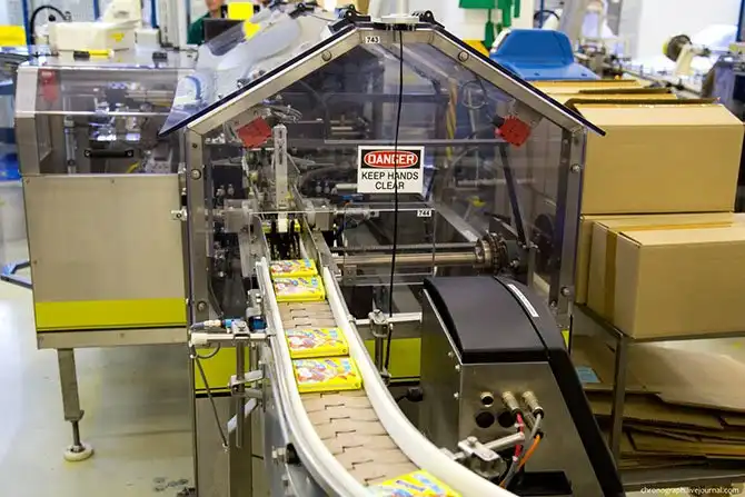 Робот-укладчик складывает батончики в коробки. В каждой коробке строго определенное, фиксированное количество батончиков.
