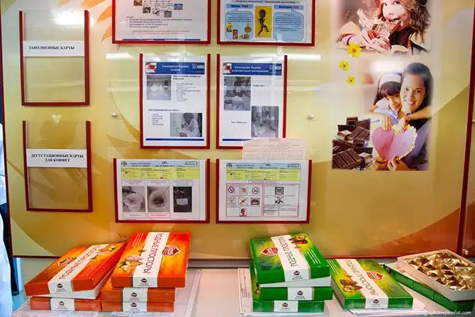 В лаборатории также выборочно проверяется вся продукция на точное соответствие всем стандартам, начиная с упаковки и заканчивая вкусом шоколада. Хорошо быть дегустатором, наверное