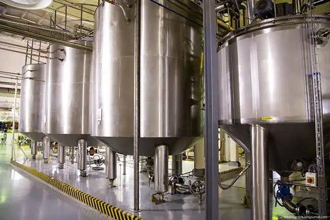 В цехе «кухне» готовится пастила, которая по трубам поступает в цех выпуска шоколадных батончиков.