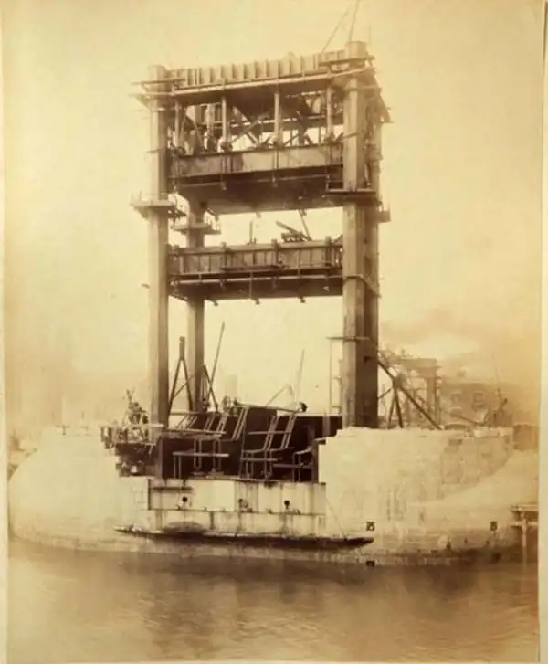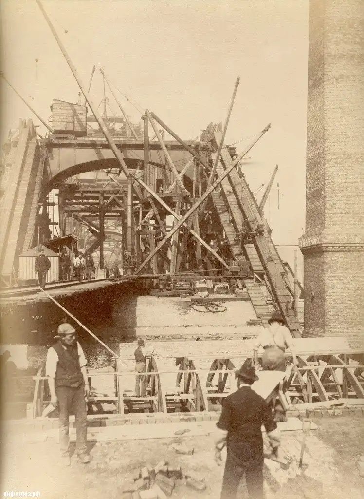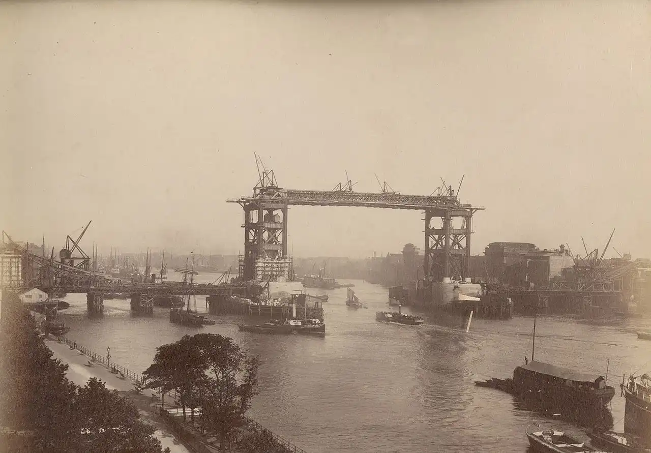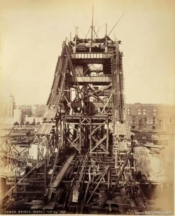 Кстати, вот эти фотографий цвета сепия, датируемые 1892 годом, запечатлели строящийся Тауэрский мост, одну из главных достопримечательностей Великобритании.