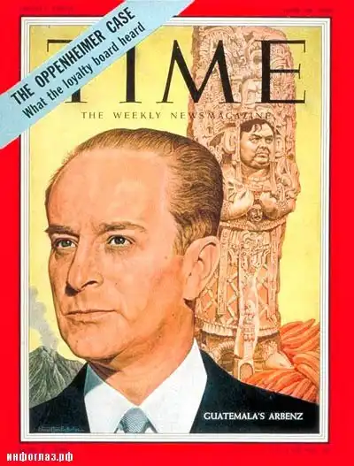 На обложку журнала Time президент Гватемалы Хакобо Арбенс Гусман попал 28 июня 1954 года — на следующий день после того, как подал в отставку. К тому моменту организованную ЦРУ операцию PBSUCCESS по смене правительства можно было считать завершенной.