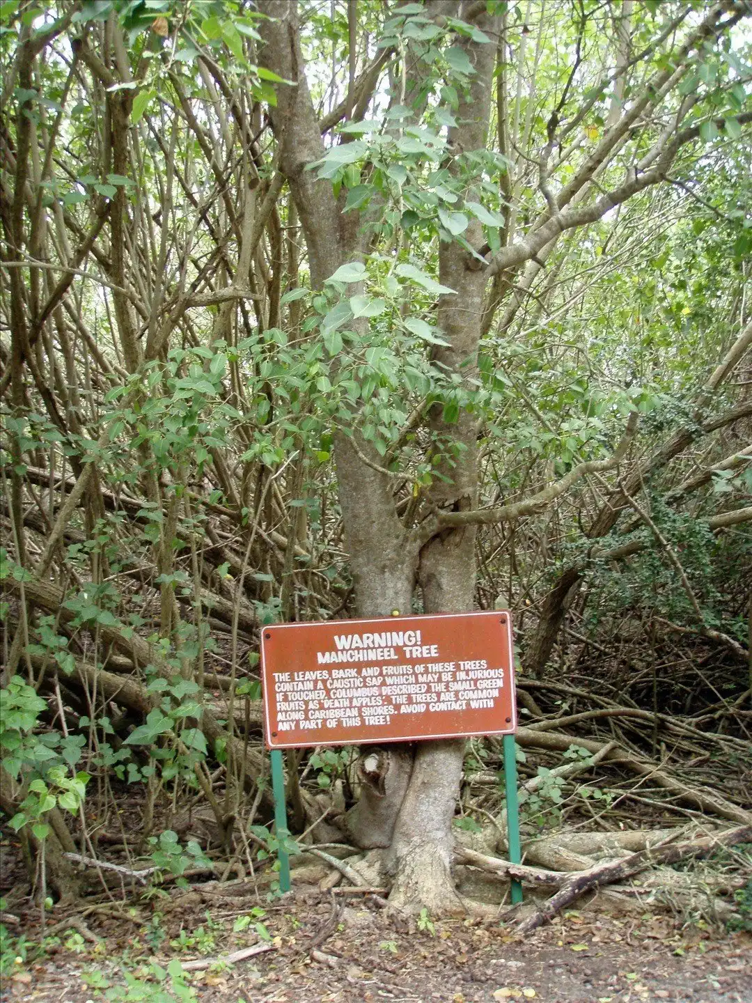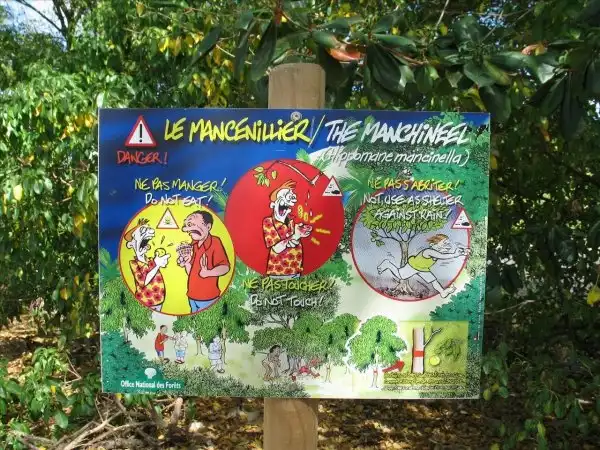 В регионах, где растет манцинелла, часто можно увидеть таблички, предупреждающие проезжающих мимо туристов, чтобы они не останавливались на отдых под сенью этих деревьев и не трогали его плодов.