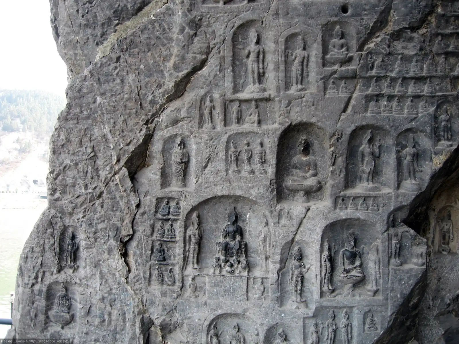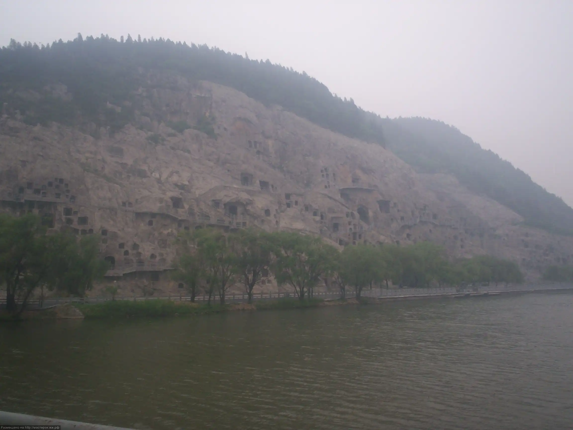 Еще одна причина выбора этого расположения более очевидна. Окрестности Лояна — одно из самых красивых мест на Земле. Этот край интересен не только пещерами, но и роскошными горами со всевозможными ущельями, лесами, родниками и водопадами. Две горы на восточном и западном берегах протекающей здесь реки Ишуйхэ покрыты зелеными соснами и кипарисами, и на них расположено множество террас. Около входа в одну из пещер на западной горе бьет горячий ключ с постоянной температурой воды +25 °С. Где еще, как не здесь, можно было в тиши скал, созерцая реку, достигать блаженства и пробуждения? Так Лоян стал центром буддизма в Китае.