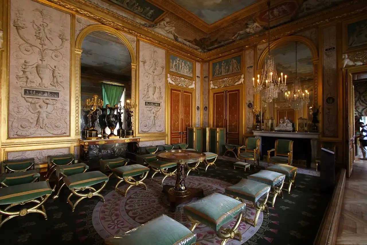 Наполеон, выбравший Фонтенбло в качестве своей официальной загородной резиденции, называл его «домом веков». Маршруты экскурсий по Большим и Малым апартаментам обязательно проходят через личные покои императора. В Красном салоне, обитом шелковыми обоями, стоит маленький круглый стол, за которым б апреля 1814 года Бонапарт подписал свое отречение от престола. А спустя несколько дней перед дворцом бывший император прощался со старой гвардией. Тогда 1200 человек выстроились на покрытом крупной брусчаткой плацу для парадов, который теперь носит название Двор прощаний. Наполеон поцеловал знамя и знаменосца и отправился в ссылку. Казалось, навсегда. Но история подарила ему еще 100 дней правления и одну короткую встречу с Фонтенбло.