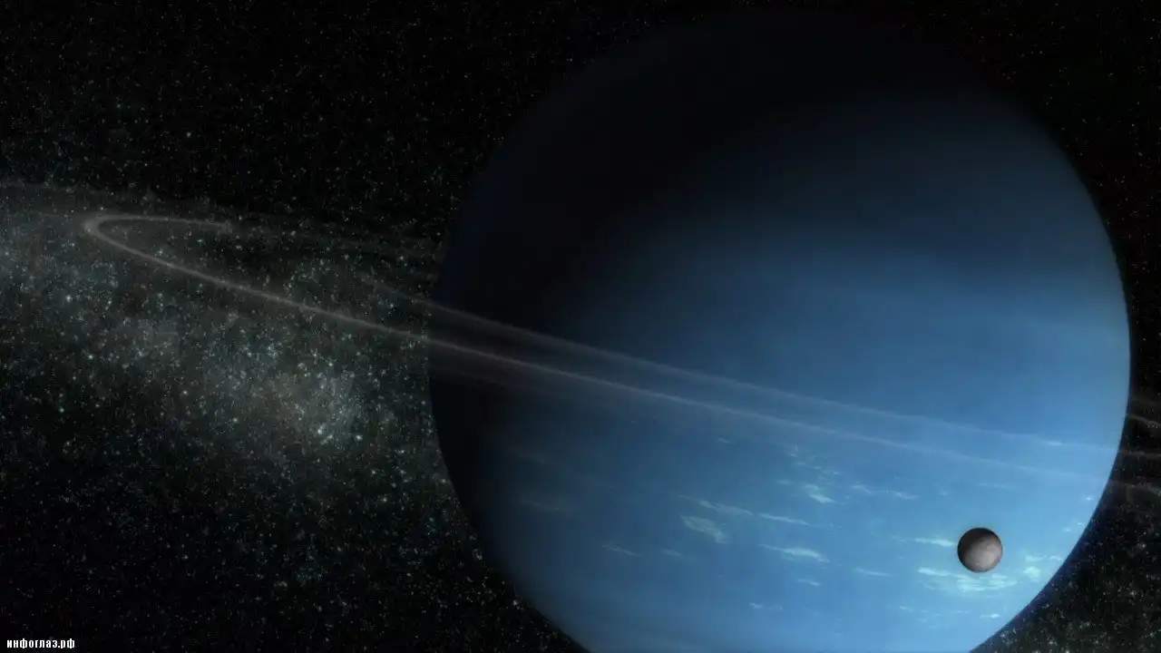 Атмосферы Урана и Нептуна, как и Юпитера и Сатурна, в основном состоят из водорода и гелия. Но Уран и Нептун астрономы называют ледяными планетами, потому что под их атмосферами находятся массивные тела из каменистых пород и различных льдов. На самом деле вода находится настолько глубоко внутри этих планет и под таким высоким давлением, что вся представляет собой горячую жидкость. Но когда миллиарды лет назад эти планеты образовались в результате слияния мелких тел, попавшая в них вода была полностью замерзшей.