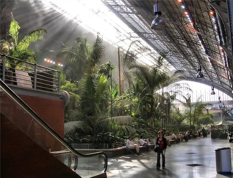 С открытием нового терминала в 1992 году местные жители решили преобразовать старую станцию, украсив ее красивым тропическим садом из пальмовых деревьев, достигающих высокой стеклянной крыши, и небольшим бассейном для