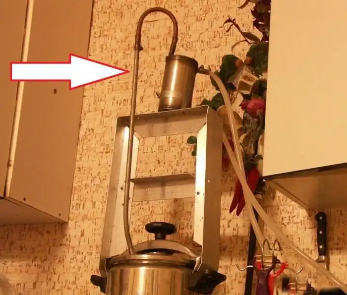 Сейчас специалисты, замашут руками-надо медный!,почему нет сухопарника? тут смело возражу!! -змеевичек медный,этого достаточно,а роль сухопарника великолепно выполняет вот эта трубка!наиболее тяжелые пары,просто не могут подняться наверх и просто стекают обратно в емкость,длину трубки,достаточно долго выискивали экспериментальным способом.