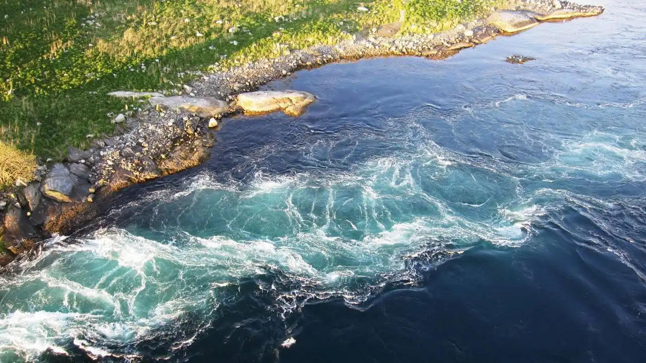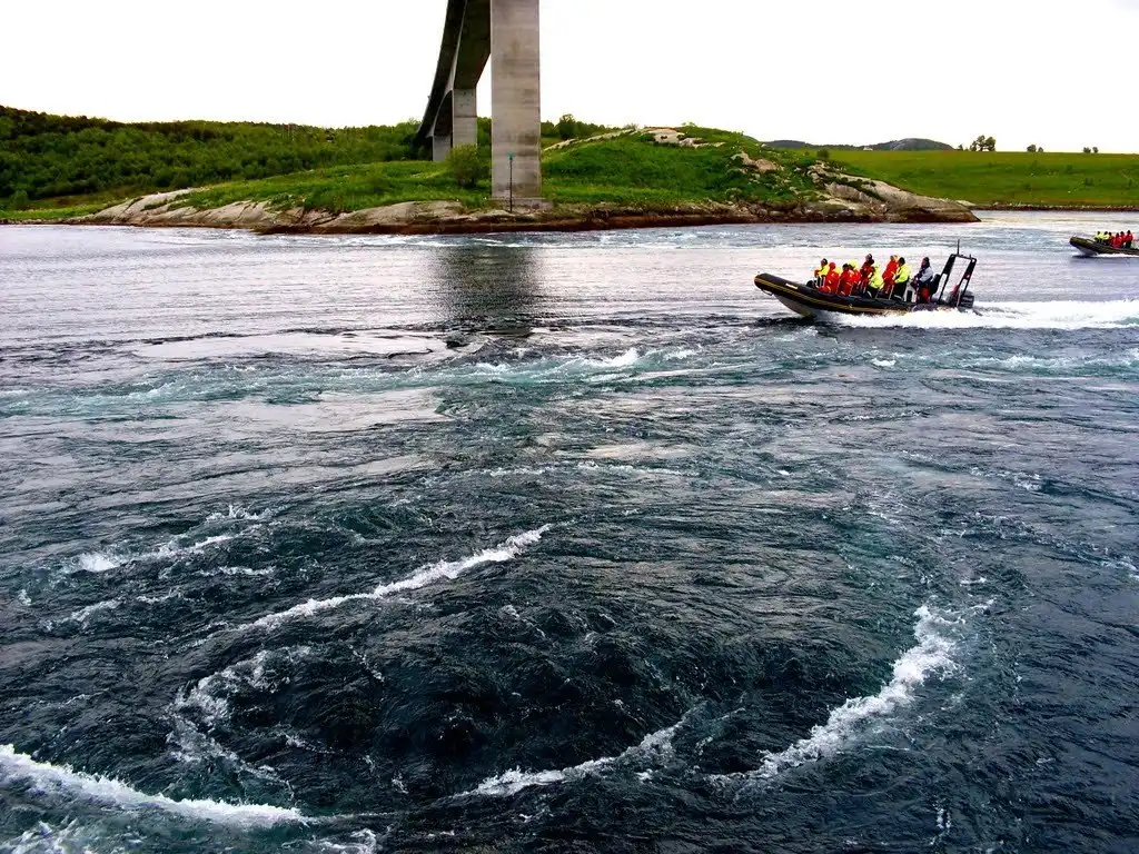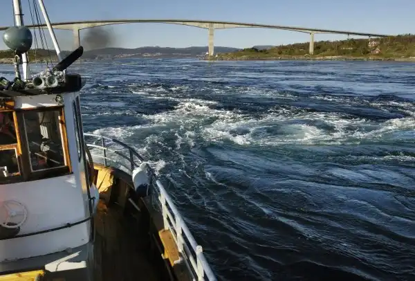 Во время прилива узкий канал, соединяющий 2 фьорда, Сальтен-фьорд (Saltfjord) и Шерстад-фьорд (Skjerstadfjord), наполняется водой. Разница между уровнем моря и уровнем воды в Шерстад-фьорде может достигать 1 метра, что способствует образованию самого сильного в мире приливного течения.
