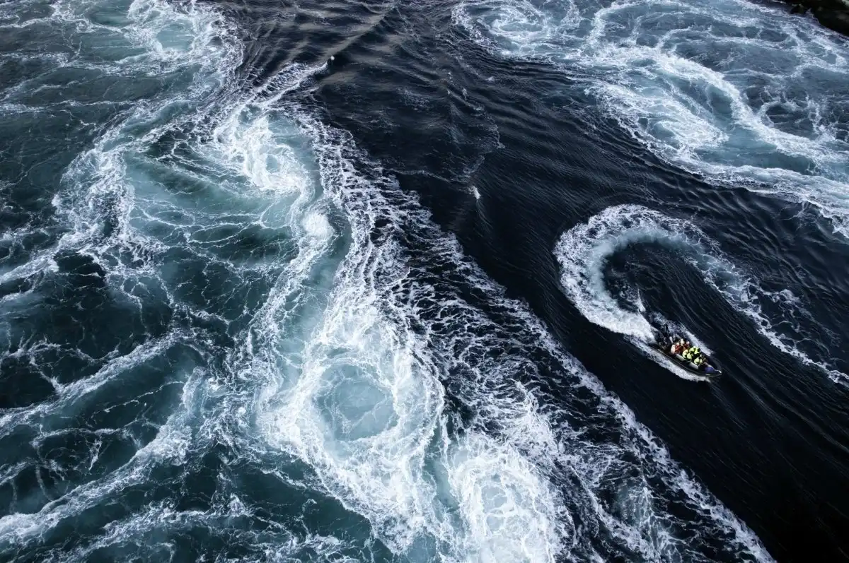 Каждые 6 часов направление течения меняется. Всего несколько часов во время прилива Сальтштраумен судоходен и по проливу могут пройти корабли. Но даже когда на поверхности царит штиль, в глубине бушуют течения, и Сальтштраумен опасен.