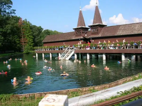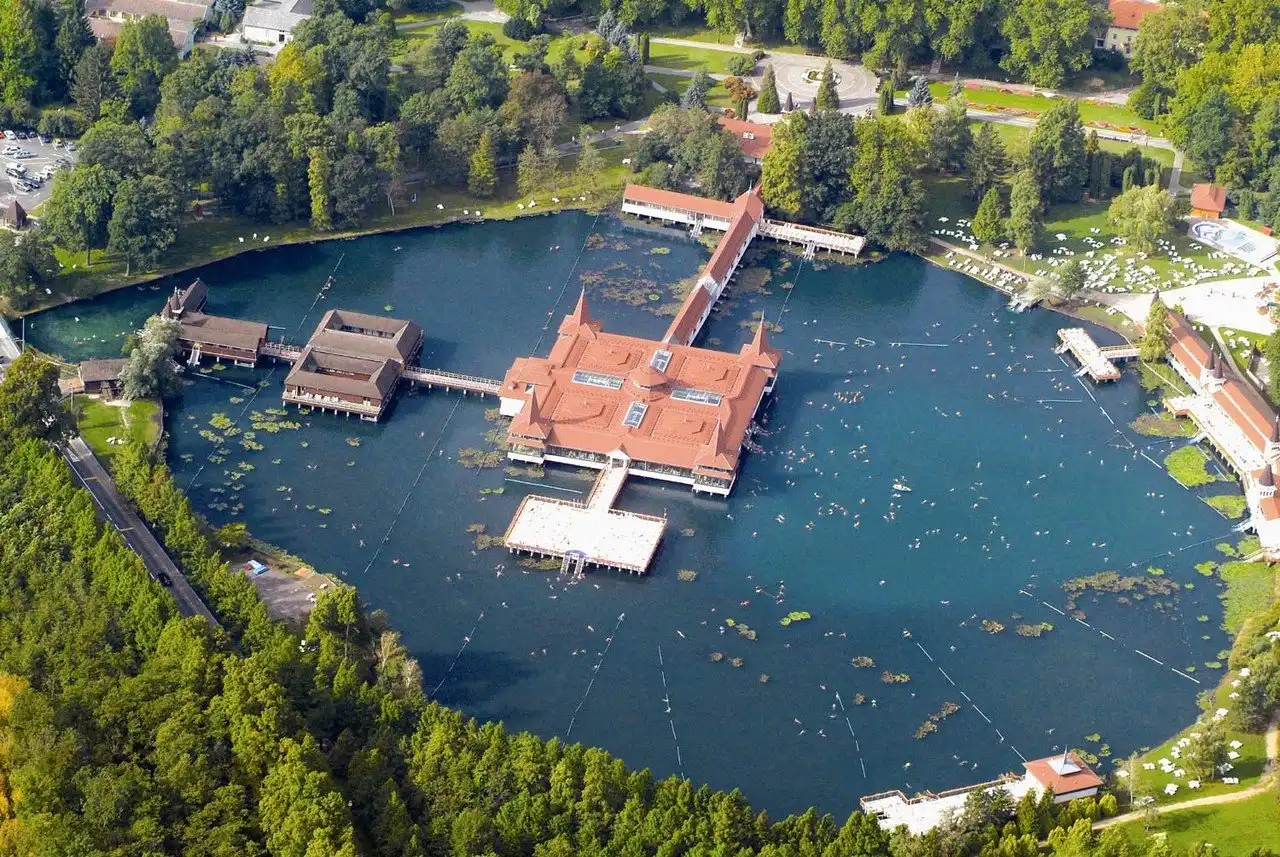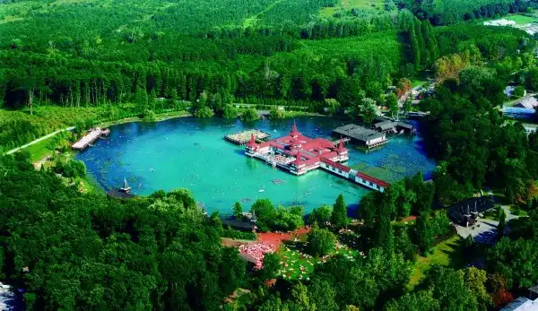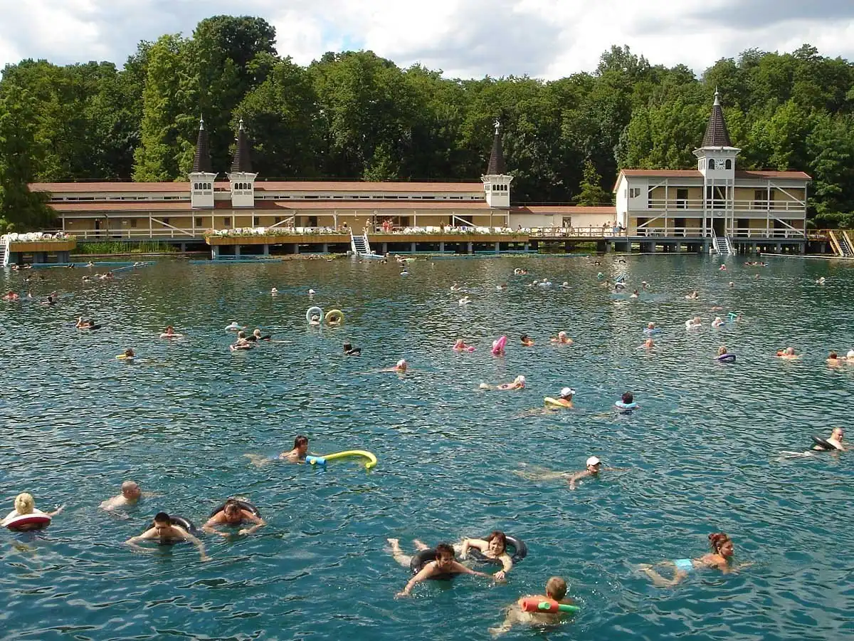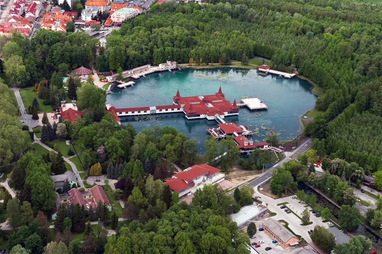 Однако, и это не все рекорды Хевиза. Оно значится вторым в мире по площади среди термальных озер, вслед за новозеландским озером в долине Ваимунгу. Озеро Хевиз – одно из самых популярных курортов с термальными источниками. Посреди озера, вот уже три столетия, возвышается баня. Температура воды в озере составляет зимой не ниже 23 градусов по Цельсию, и не ниже 33 – летом. Лечебный эффект озера является результатом смешивания органических и неорганических материалов.