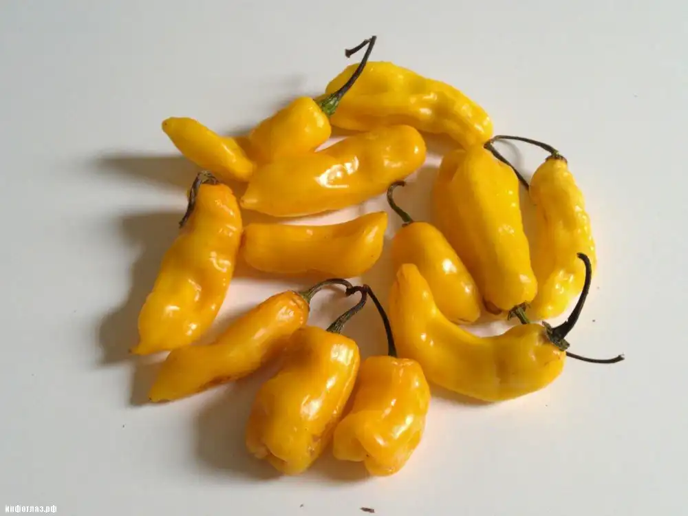 Эта разновидность перца родом из Суринама. По одной из версий, свое название он получил по имени проститутки из Парамарибо. Безобидный на вид гладкий желтый стручок содержит в себе мощный заряд остроты. В нем нет фруктовых или цветочных ноток, он просто острый. Мадам Жанетт можно встретить в традиционной суринамской и антильской кухнях. Этот сорт часто путают с «желтым Суринамом» – суринамским перцем Чили желтого цвета, но зрелые перцы Мадам Жанетт красновато-желтого цвета, они крупнее и неправильной формы. Растение очень урожайно, растет мало и не любит прохлады, может расти в помещении.