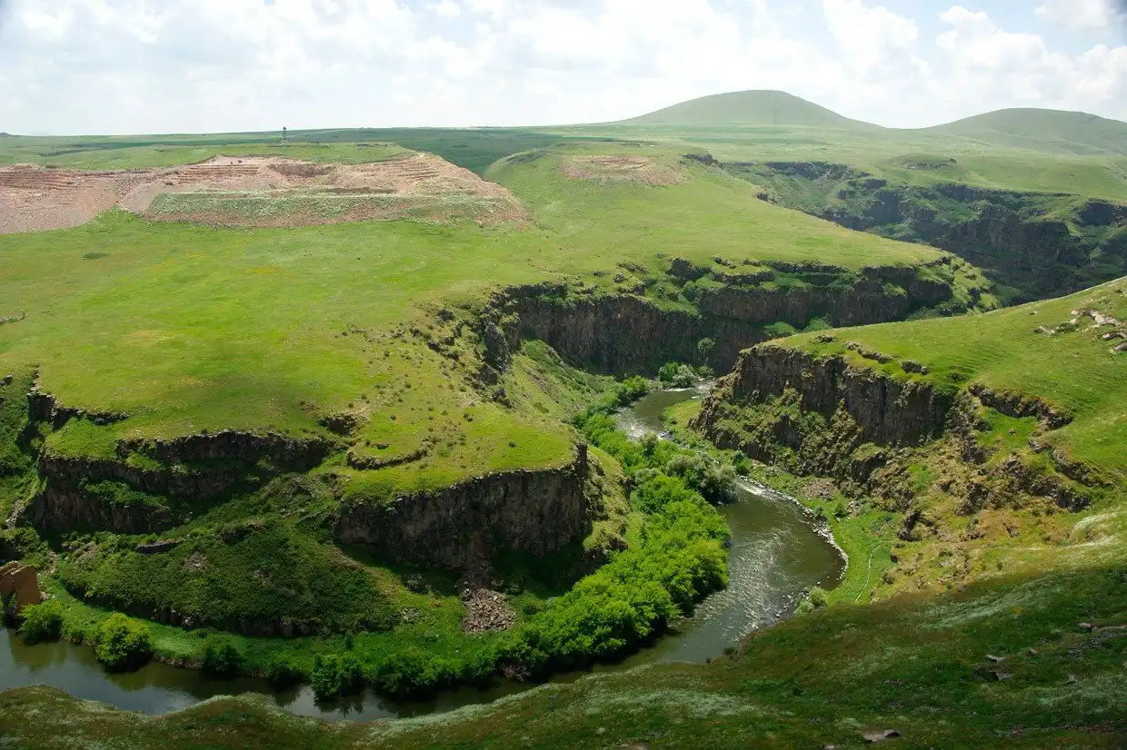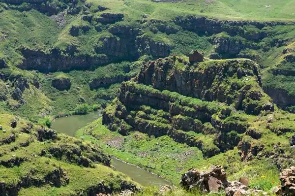 Ущелье ниже города Ани. Здесь видны многочисленные пещеры в скалах, а также укрепления. (Фото Adam Jones)