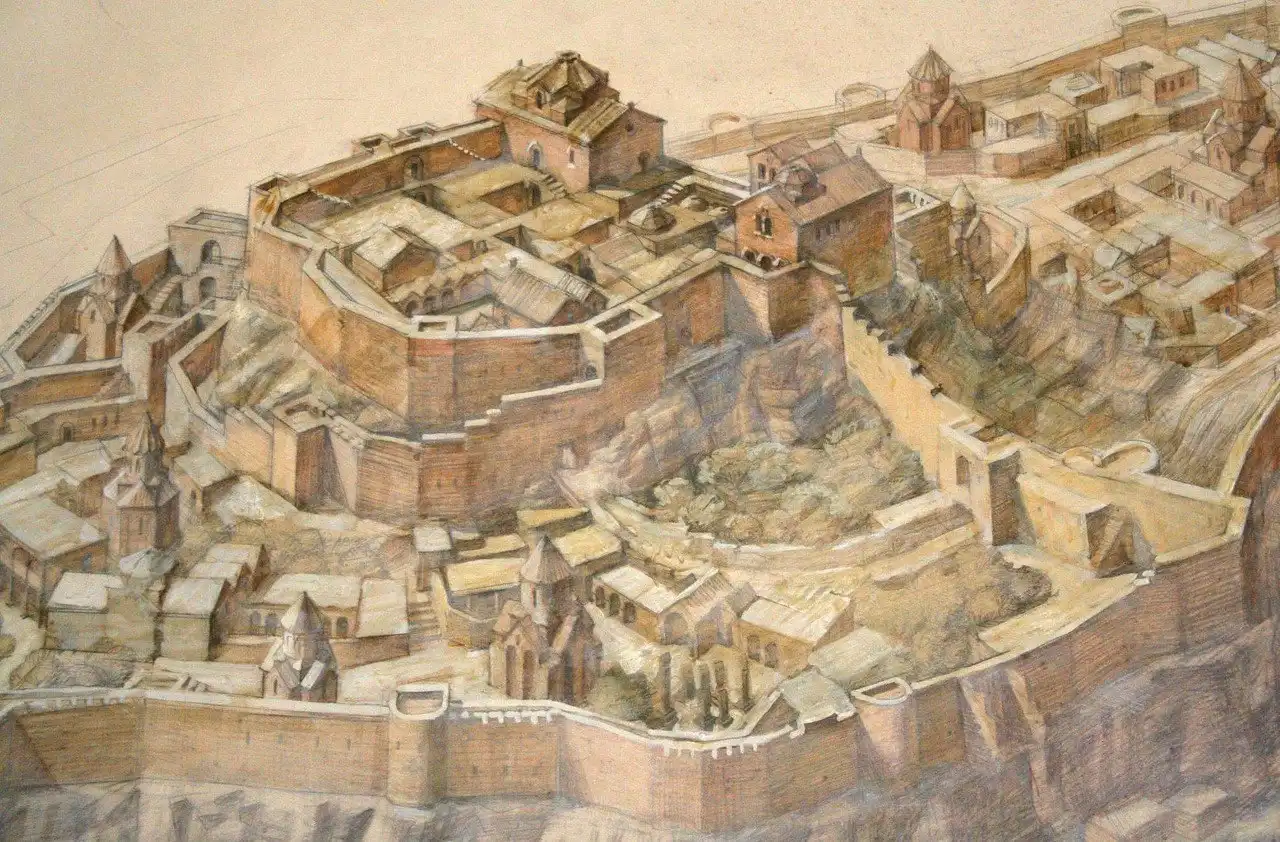 С начала 9 века вокруг крепости стали появляться многочисленные ремесленные поселения, тогда город и получил своё нынешнее название, став крупным культурным и экономическим центром. В 961 году город становится столицей Армении , и начинает быстро расти.