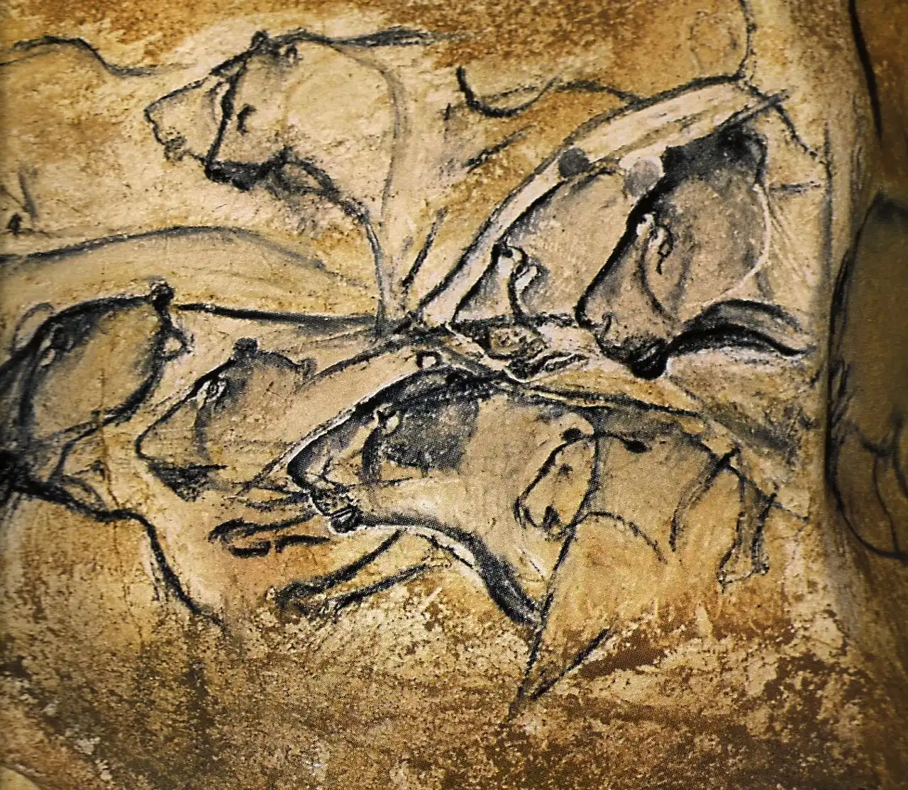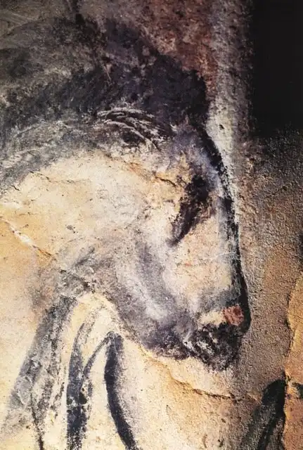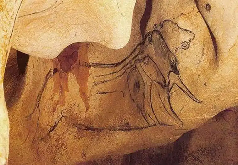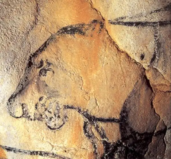 Живопись Шове удивительна во многих отношениях. Взять, например, ракурсы. Обычным делом для пещерных художников было изображать зверей в профиль. Конечно, и здесь это характерно для большей части рисунков, но встречаются прорывы, как на вышеприведённом фрагменте, где морда бизона дана в три четверти. На следующем рисунке можно видеть тоже редкое изображение в фас: