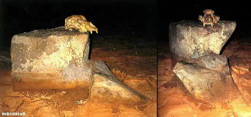 В позднем плейстоцене могли сосуществовать по крайней мере два вида медведей: бурые благополучно дожили до наших дней, а их родственники — пещерные медведи (большой и малый) вымерли, так и не сумев адаптироваться к сырому сумраку пещер. Большой пещерный медведь был не просто велик — он был огромен. Вес его достигал 800-900 кг, диаметр найденных черепов составляет около полуметра. Из схватки с таким зверем в глубинах пещеры человек, вероятнее всего, не мог бы выйти победителем, но некоторые специалисты-зоологи склонны предполагать, что, несмотря на устрашающие размеры, это животное было медлительным, неагрессивным и не представляло реальной опасности.